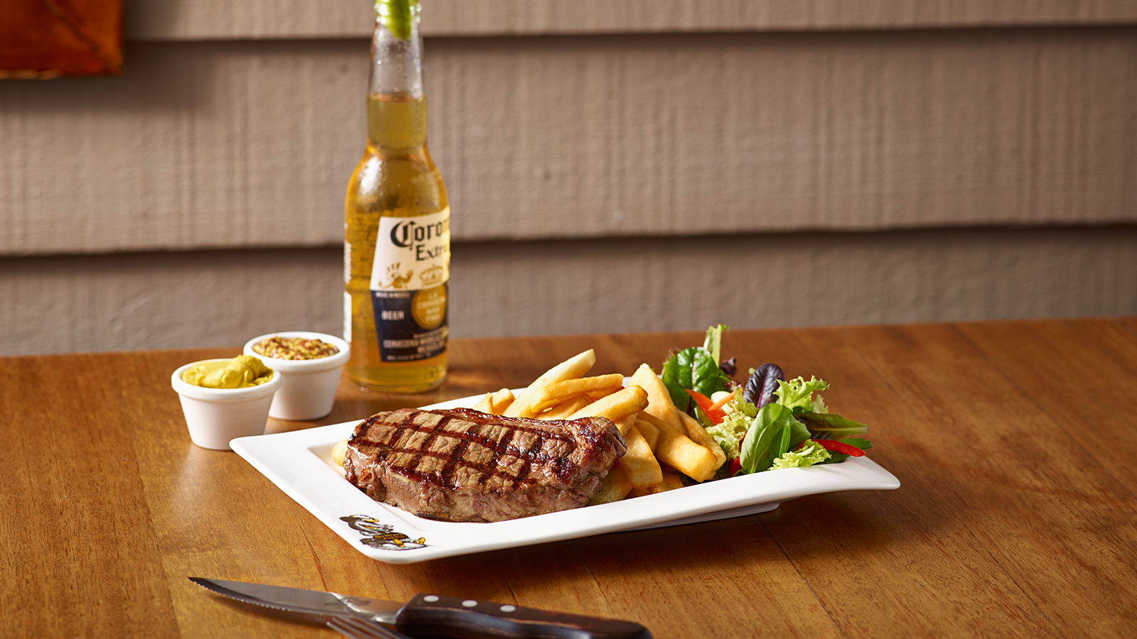 In all of our restaurants you can select your own cut of meat from our chilled display cabinet from where it is then cooked by our chefs for all to view on an open char grill. You can choose from a high score Wagyu Porterhouse or a Prime Rib on the Bone. Also on the Outback Jacks menu is our delicious Wagyu Burger, or try our mouth watering full rack of pork ribs!
